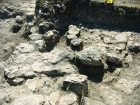- cea mai veche amenajare este reprezentată de câteva dale de calcar păstrate în centrul caroului şi spre latura sa de S, ce par să stea peste tasarea inferioară (aceste.
