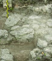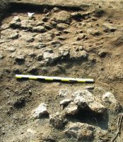 - la -1 m adâncime apar câteva dale de pavaj, ce suprapun un prim nivel de tasare, la care s-a ajuns, în zona cercetată în campania 2014, numai în centrul c.63 şi în colţul de SV al c.56;