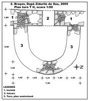 Săpătura a stabilit elementele de construcţie, planimetria, precum şi nivele constitutive ale turnului, plecând de la nivelul de călcare în turn aflat la –3,28 m faţă de orizontala trasată de noi.