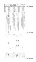• Unitatea 2: Limon brun gălbui (10 YR 5/4). Grosime: 0,7 m;
