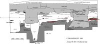 Cpl. 1 – cercetarea edificiului absidat s-a încheiat. În această campanie s-a mai secţionat, aprox. la mijloc, latura de E. Fundul şanţului de fundaţie se află la -0,68 m. La -0,74 m, sub şanţ s-a observat prezenţa unei depuneri subţiri, de 2 cm grosime, de cenuşă şi cărbune. O situaţie identică a fost înregistrată şi în jumătatea de V a sub-arealului.