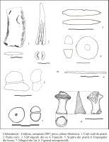 În cursul lunilor august - noiembrie au fost continuate săpăturile arheologice în Cetăţuia de la Cârlomăneşti, jud. Buzău. În această campanie cercetarea s-a desfăşurat în două sectoare: Platou şi Terasa 1. Platou În campania 2007 s-a continuat cercetarea sub-arealului V4bS (9 x 9 m), scopul fiind epuizarea integrală a suprafeţei. Din păcate nu s-a reuşit decât finalizarea jumătăţii de V, până la pământul viu, şi a nivelului dacic din jumătatea de E. Epuizarea părţii de V a suprafeţei ne-a prilejuit obţinerea unui profil magistral, pe direcţia N-S, care ne oferă date concrete privind succesiunea nivelelor arheologice din această parte a Cetăţuii. Statul de cultură are o grosime ce variază între 1,80 - 1,90 m, fiind împărţit în patru unităţi distincte: - stratul de pământ vegetal actual, negru, cu aspect măzăros, ce are o grosime de 0,10/0,15 m. Acest strat conţine numeroase materiale arheologice de factura dacică, extrem de fragmentate. - depunerea din epoca dacică (a doua jum. a sec. II – sec. I a.Chr.) care ajunge până la adâncimi cuprinse între 0,80 şi 1 m, având aşadar o grosime de 0,65-0,85 m. În acest strat s-au putut observa cel puţin trei nivele de călcare, puse în evidenţă de podine din lut galben sau cafeniu, cu o consistenţă foarte dură, de complexe adâncite sau vetre, uneori chiar de benzi de pământ cu consistenţe şi culori diferite, reprezentând probabil rezultatul unor nivelări. - strat de pământ brun, compact, ce reprezintă humusul format între părăsirea platoului de către purtătorii culturii Monteoru şi prima locuire din epoca Latène. Acesta are o grosime ce variază între 0,25 şi 0,35 m, şi conţine materiale arheologice, destul de fragmentate, din ambele epoci. - depunerea din epoca bronzului (cultura Monteroru), groasă de aprox. 0,80-0,90 m, se împarte în două straturi distincte: un strat cenuşiu, gros de 0,35-0,40 m, care poate fi încadrat, conform fragmentelor ceramice, în etapele finale a culturii Monteoru, şi un strat cenuşiu-gălbui, cu o grosime de 0,45-0,50 m, care se datează în perioada timpurie a epocii bronzului. În această campanie, epoca dacică este reprezentată doar prin materialele descoperite în gropi. Astfel, au fost cercetate 15 gropi, dintre care 5 au fost epuizate în întregime, iar alte 5 doar pe jumătate. De asemenea au fost descoperite alte trei gropi noi, între care o groapă de stâlp. Având în vedere întinderea suprafeţei cercetate, gropile sunt relativ numeroase şi sunt concentrate mai ales în jumătatea vestică a sub-arealului. Forma lor este cilindrică în cazul gropilor folosite pentru ridicarea structurilor de susţinere a acoperişului unor construcţii, însă de cele mai multe ori ele aveau formă de ”clopot”. Majoritatea gropilor au adâncimi mari, de peste 2 m. Umplutura lor, extrem de variată, cuprinde: pământ galben curat, bucăţi de pereţi de locuinţă, adesea puternic arşi, cenuşă, cărbune, porţiuni din crusta şi miezul unor vetre, pietre, oase de animale, diferite obiecte din metal sau lut şi, nu în ultimul rând, fragmente de vase, unele parţial întregibile. Aşa cum se prezintă umplutura, respectiv sub forma unor straturi curbate în jos, majoritatea au fost umplute rapid, cu ceea ce putem numi, fără să greşim, gunoi. Dintre gropile cercetate integral sau parţial remarcăm aici cpl.19, 44 şi 49 care au livrat o cantitate foarte mare de fragmente ceramice. În acest sens menţionăm, pe lângă mai multe vase parţial întregibile (fructiere, borcane, ceşti-opaiţ, căni), un capac, cu apucătoare zoomorfă, aproape întreg, de formă conică, lucrat la mână şi acoperit cu un strat de angobă fină, dar şi un urcior (lagynos) de import, din care lipseşte gâtul şi gura, cărămiziu, acoperit cu angobă gălbuie, peste care s-a aplicat un decor pictat cu roşu. Amintim aici şi finalizarea cercetării cuptorului, cpl. 52, descoperit anul trecut. Cea mai importantă parte din acest complex se afla în interiorul unui martor, care a fost demontat. Astfel, a fost surprinsă, in situ, o parte din cupolă, pe o lungime de 20 cm şi o înălţime de 8 cm. De asemenea s-au descoperit porţiuni din cupolă, căzută direct pe vatră, sub care erau prinse resturile focului (cărbune şi cenuşă). Depunerea din epoca bronzului s-a dovedit a fi extrem de bogată în complexe adâncite, descoperindu-se 15 gropi. Este de remarcat lipsa aproape totală a vetrelor, deseori întâlnite în cursul săpăturilor mai vechi. Gropile monteorene aveau în general forma de „clopot”, mai rar cilindrică, unele dintre ele având adâncimi de aproape 1,80-2 m. În acest sens menţionam două gropi, cilindrice, apropiate una de alta, cu diametru de aproximativ 0,90 m, ce aveau pereţii părţii inferioare, lutuiţi cu un strat gros de 1-2 cm, de pământ galben-verzui. Lutuiala de pe fundul gropilor era mult mai groasă, de cca. 6-8 cm, însă credem că este rezultatul căderii lutuielii din partea superioară. Prezenţa locuinţelor este pusă în evidenţă de zone cu pământ galben, compact, ce constituie cu siguranţă resturi de podină, dar şi de existenţa unor gropi mici, cu pietre în interior, care au slujit la fixarea stâlpilor de lemn. Deosebit de interesantă a fost descoperirea unui rest de locuinţă, care prezenta puternice urme de incendiu. Este vorba de cpl.76, surprins în extremitatea de S, făcând parte din zona triunghiulară, cruţată în 1979, din arealul V3bN. În acest loc, la adâncimea de -1,60/1,65 m, faţă de nivelul actual de călcare, a fost dezvelită o zonă compactă de lipitură arsă, pe o suprafaţă de aproximativ 2 m2, provenind de la un perete căzut, puternic ars. Sub aceste resturi de lipitură, dar şi în jurul ei, s-au descoperit foarte multe fragmente ceramice, unele provenind de la vase întregi, care stăteau într-un pământ negru, plin de c
