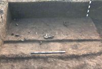 - cel de-al doilea nivel, stratul arheologic propriu-zis, are grosimi cuprinse între 0,20-0,60 m, are o culoare maronie închisă; este nivelul în care apare materialul arheologic cu preponderenţă, respectiv complexele aferente locuirii;