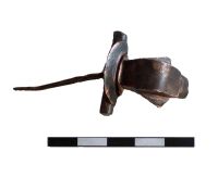 În ceea ce priveşte partea de material arheologic colectată din această secţiune, ceramica este de departe categoria cea mai frecventă, de fapt aproape exclusivă. Singurul artefact de altă natură este o fibulă cu genunchi, căreia îi lipseşte piciorul. A fost descoperită în extremitatea sudică a secţiunii, în partea superficială a stratului arheologic. Este lipsită de un context închis. Este confecţionată din bronz şi se poate încadra tipologic în seria 19, tipul a8f1a, după S. Cociş1. Sistemul de închidere este prin balama, capul este semicircular, corpul are un decor format din două linii care se intersectează în forma literei „X”, având pe ambele laturi câte două linii paralele. Decorul, executat prin gravare, este destul de greu de reperat, canelurile fiind foarte fine. Piciorul, în cazul de faţă absent, se termină de obicei în buton şi este scurt. În forma păstrată fibula are 3 cm, iar închiderea este prin sistemul cu balama, tipul V2. Conform aceluiaşi autor, utilizarea acestui tip de fibulă începe în jurul anului 200 şi continuă până cca. în 2703.