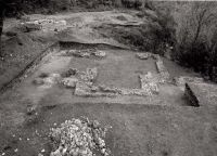 Investigaţiile pentru identifi carea monumentului medieval au parcurs etapele diagnosticului de teren, cu prospecţiuni geofi zice şi până la cercetarea intruzivă. Exploatarea geofi zică a spaţiului estic al Văii Văradului din zona izvoarelor, unde memoria colectivă fi xa amplasamentul vechii mănăstiri, n-au identifi cat bulversări ale straturilor cu urme de locuire. Fundaţia monumentului a fost localizată într-o zonă de prăbuşire pe marginea nord-vestică, zonă afectată de altminteri şi de lucrările recente de captare a apei de la mina Vărad. Săpătura arheologică (S6 – S9), ce a însumat curca 100 m2, a evidenţiat planimetria bisericii din care s-au păstrat doar fundaţiile. Dezafectarea zidurilor bisericii s-a făcut sistematic, pe alocuri, zidul vestic al navei şi cel sudic au fost demantelate până la baza fundaţiei. Fundaţia bisericii, raportată la nivelul de călcare medieval identifi cat în spaţiul altarului, avea o adâncime de -25 m - -0,30 m. Ea s-a făcut din piatră de calcar rulată de pe versanţii Văii Văradului. Zidurile au fost înălţate din blocuri de tuf calcaros, prelucrat sub forma unor bolţari paralelipipedici, ce aveau dimensiunile de 50/60/20 cm, 27/20/13 cm, 26/16/15 cm.