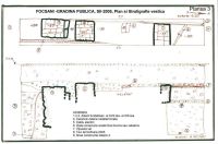 - zidărie de plan dreptunghiular, din care am relevat trei laturi: zidul nordic, relevat pe lăţimea şanţului trasat. Zidul nordic, orientat E-V, are lăţimea de 0,42–0,45 m; latura vestică se continuă pe direcţia N–S pe o lungime de cca. 3 m şi o lăţime de 0,43 m; latura sudică continuă spre E numai pe lungimea de cca. 0,40 m, cu lăţimea de 0,50 m.