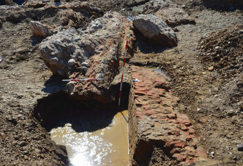 Above the water table, several compact, large fragments of fallen and/or displaced walls were identified; the gravel above the water table is entirely alluvial, brought by Proviţa in the last century; only one wall was captured in its original position, in elevation, the rest of the foundations are currently below the water table level