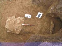 Menţionăm descoperirea unor complexe funerare cu caracteristici deosebite o înhumare în amforă (M39): a fost utilizată jumătatea inferioară a unei amfore acoperită cu o piatră fasonată; în interior s-au identificat câteva fragmente de craniu cu pereţii extrem de subţiri, aparţinând unui copil de vârstă foarte mică. Acest tip de înhumare are analogii tot în necropola callatiană de epocă romano-bizantină (M208 din zona cercetată şi publicată de C. Preda)2.
