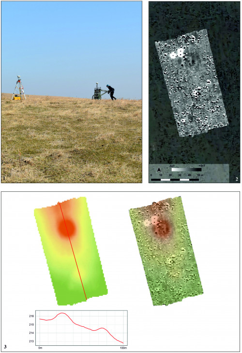 În urma cercetărilor neintruzive s-a constatat că cele două movile sunt antropice, însă interpretarea datelor geofizice a fost limitată de numeroase anomalii de dată recentă (Fig. 2/2, 3), perturbațiile fiind puse pe seama unor elemente metalice (cel mai probabil resturi de muniție), având în vedere faptul că tumulii se aflau chiar pe linia frontului în perioada celui de-al doilea Război Mondial.