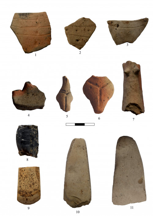 Ca și în campanile trecute, vestigiile arheologice cele mai numeroase aparțin culturii Precucuteni, fiind reprezentate de resturi ceramice, materiale osteologice, reprezentări antropomorfe și piese litice (Fig. 4/4-11).