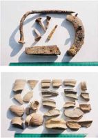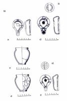 Fragmentele de cahle, nesmălţuite, au motive ornamentale geometrice şi florale, caracteristice secolelor XVI-XVII. Materialul ceramic este deosebit de diversificat, de la chiupuri de provizii, cu pereţii groşi de circa 5-6 mm, până la vase de dimensiuni reduse, din pastă extrem de fină.
