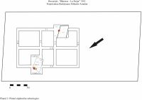 În grund, între - 0,70 - 0,80 m, locuinţa are o formă dreptunghiulară cu o lungime de 2,80 m (latura V-E) şi o lăţime de 2,20 m (latura N-S). Axul locuinţei este N/V - S/E. Umplutura Loc. 1, cu o grosime de aproximativ 0,60 m, se termină la - 0,93 m, faţă de nivelul actual de călcare, fără a se surprinde urme ale unei podele.