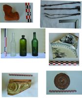 Inventarul CASEI 2 se compune, de asemenea, din: fragmente de cahle, recipiente din sticlă de diverse dimensiuni şi forme, fragmente ceramice şi de porţelan, oase de animale, precum şi vase din tablă şi email (oale, capace, un polonic) databile la începutul secolului XX. (Planşa VII)