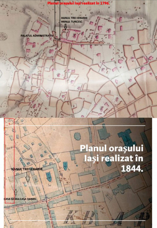 În documentele cartografice din secolele XVIII-XIX sunt indicate în capătul bulevardului „Ștefan cel Mare” (chiar în fața Palatului Administrativ din Iaşi, Palatul Culturii de astăzi), corpurile de clădiri Ghica/Daniel/Hotel St. Petersburg (Pl. I). Istoricii au stabilit că în primăvara anului 1848, firma „St. Petersburg” se instalase în casele bancherului Michael Daniel din apropierea Palatului Administrativ[1]. Casa din Uliţa Mare, de pe locul aflat astăzi în faţa Palatului Culturii, fuseseră construite de boierul Grigore Ghica (marele logofăt Grigore Ghica de la Herţa, întemeietorul ramurii Ghica-Budeşti, care era căsătorit cu Caterina Cantacuzino-Paşcanu). La 1847, fiul acestuia, vornicul Vasile Ghica, le-a vândut bancherului Strul Heim Daniel, care le-a închiriat, din anul următor, Hotelului Petersburg[2].