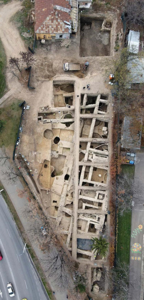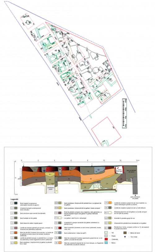 During the archaeological rescue investigations from "Ghica-Daniel House/ Petersburg Hotel", from the archaeological site Old Town Center-Princely Court in Iasi, an area of about 2710 sq.m. was investigated. Inside it were identified and investigated 199 complexes and archaeological contexts, dated in the Aeneolithic, Middle Ages and Modern era. Thus, in this perimeter were found the stone structures corresponding to the fencing wall of Trei Ierarhi monastery, most likely dated to the 17th century, to which was added the foundation of the northern wall of the secondary building belonging to the complex "Casa Ghica-Daniel/Hotel Petersburg" (19th century). These structures overlap and incorporate foundations and walls from the Ghica Houses, which in turn overlap medieval complexes from the 15th-17th centuries, as well as some remains of Cucutenian complexes. The building on the northern side of the Petersburg Hotel measured about 10.50 / 11.0 m x 68.0 m. Under this building were discovered and investigated two stone sewers, which discharged their contents into a stone main sewer (Cx. 81), with a length of 48.60 m. These architectural elements, as well as the pits for clay exploitation or those for lime quenching, completely or partially destroyed the habitation complexes (dwellings, pits with uncertain functionality) of the Eneolithic period, but also from the 14th-15th, 15th-16th, 17th and 18th centuries.